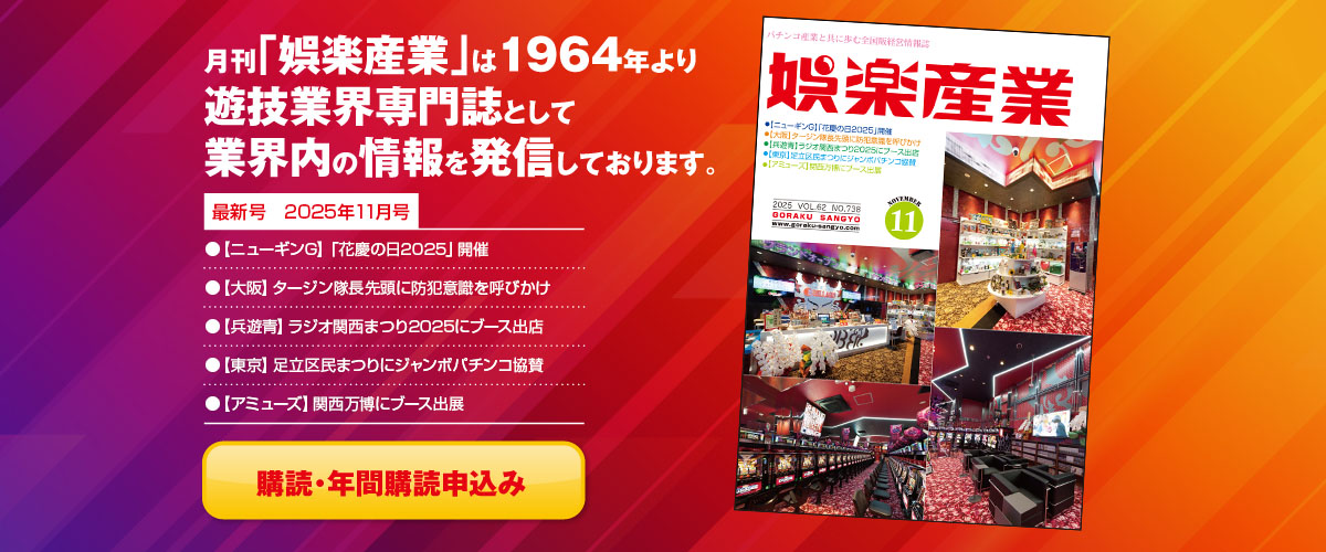 (株)マルハン(本社/京都、東京)の東日本カンパニー(韓裕社長)は、2024年4月より始動した次世代のファン獲得・育成を目指した「ヲトナ基地プロジェクト」の一環として、「脳汁銭湯(のうじるせんとう)2025」を、大田区蒲 […] -