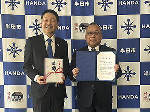 愛知遊協 半田組合が一市五町に寄付し、半田市長から感謝状受領
