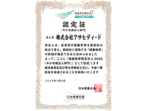 (株)アサヒディード(本社/大阪市浪速区)はこの度、経済産業省と日本健康会議が選定する「健康経営優良法人2026(中小規模法人部門)」に認定された。 健康経営優良法人認定制度とは、地域の健康課題に即した取り組みや日本健康 […] -