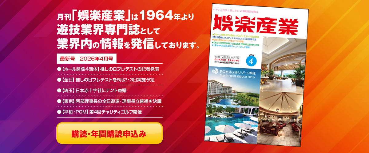 日本遊技機工業組合(榎本善紀理事長)は、PACHI-PACHI-7プロジェクトの一環として、ホール関係4団体が主催するイベント「推しパチの日・推しスロの日」(通称:推しの日)プレテスト(5月2日・3日)に向けたプロモーシ […] -
