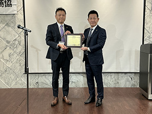全商協加盟の関西遊技機商業協同組合(小西哲也理事長)は1月20日、大阪市内のホテル日航大阪において開催された代表者研修会の席上、社会福祉法人大阪府社会福祉協議会(井手之上優会長)より、車イス寄贈に対する感謝状が贈られた。